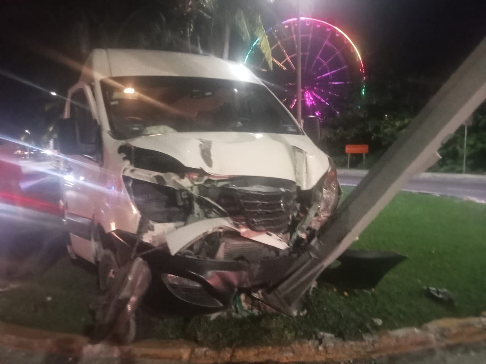 El conductor de una van perdió el control y chocó contra postes de alumbrado y cámaras en el kilómetro 11.5 del Boulevard Kukulcán en la Zona Hotelera de Cancún.