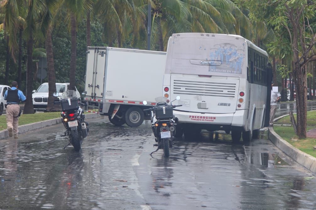 De acuerdo con el reporte preliminar, el conductor del camión no habría tomado en cuenta las condiciones de la vía, lo que provocó que derrapara y terminara colisionando contra el autobús, quedando ambos vehículos detenidos sobre el Bulevar Kukulcán.