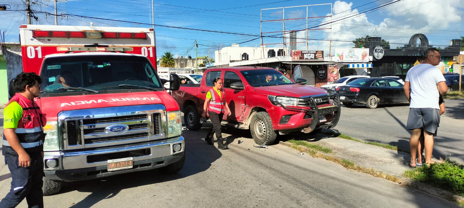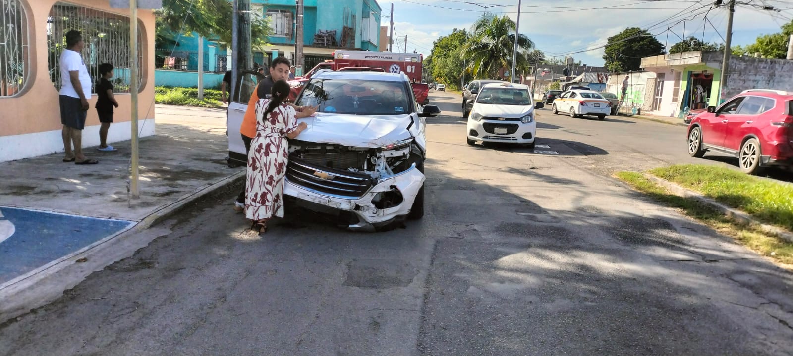 Chetumal (Marcrix Noticias).- Un aparatoso accidente vehicular se registró este domingo a las 15:26 horas en la colonia Italia de Chetumal, donde dos camionetas chocaron violentamente en el cruce de la avenida Isla Cancún con la avenida Nápoles.