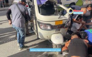 La unidad particular se impactó de frente contra el mototaxi en el que viajaba una pareja junto con su hijo menor. Tras el fuerte golpe, el vehículo de transporte público fue proyectado varios metros hasta terminar sobre la banqueta, lo que aumentó la magnitud del incidente y causó alarma entre vecinos de la zona.