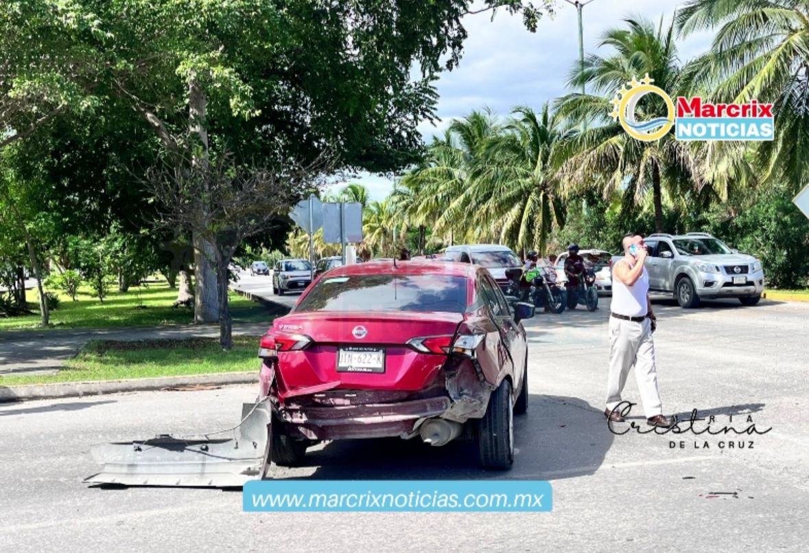 Cancún (Marcrix Noticias )-Esta mañana se registró un accidente vehicular en el cruce de las avenidas Andrés Quintana Roo y Chac Mool, en Cancún, cuando el conductor de un Nissan Versa, color rojo y con placas del Estado de Quintana Roo, realizó una vuelta indebida.