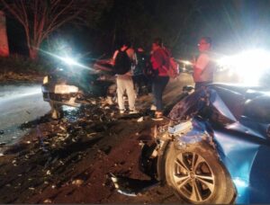 Cancún (Marcrix Noticias).- Los hechos ocurrieron alrededor de las 23:20 horas a unos cinco kilómetros de la avenida José López Portillo, cuando el conductor de un vehículo Volkswagen Poniter, circulaba de Sur a Norte, sin embargo, al intentar rebasar un tráiler se estrelló de frente contra un auto Nissan Versa, color azul.