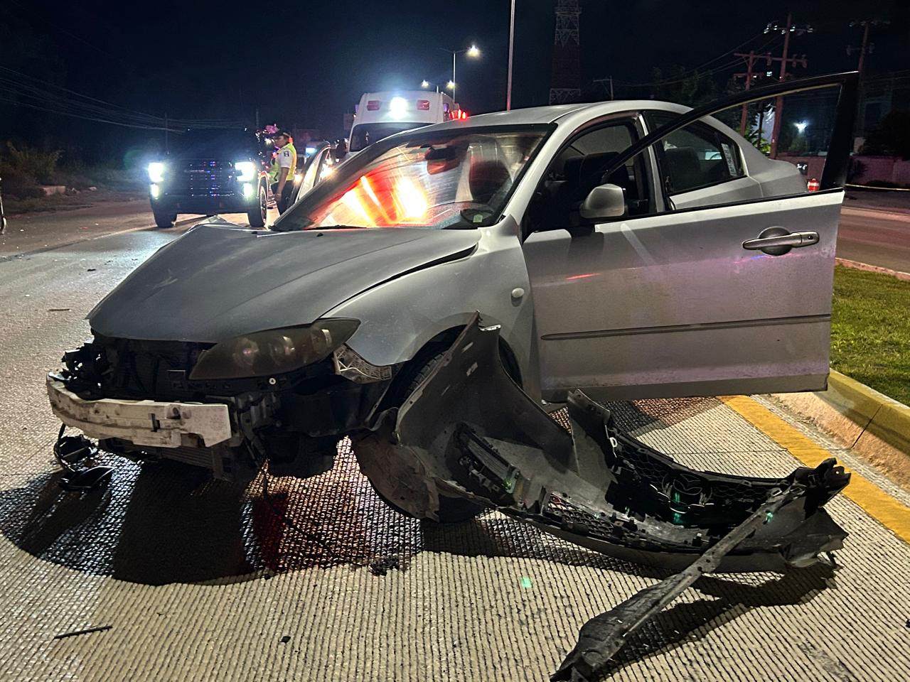 Cancún (Marcrix Noticias)-Un aparatoso choque múltiple ocurrió la noche de ayer en el bulevar Luis Donaldo Colosio de Cancún, cuando el conductor de un vehículo Mazda impactó por detrás a una camioneta de la Fiscalía General del Estado (FGE), provocando una serie de colisiones en cadena que involucraron a tres vehículos más. Como saldo, dos personas resultaron lesionadas y hubo cuantiosos daños materiales.