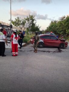 Cancún (Marcrix Noticias).- Un accidente en Villas Lak’in registrado la tarde de este martes 24 de diciembre dejó un saldo de dos personas lesionadas, luego de un choque entre dos vehículos que derivó en la volcadura de uno de ellos, al final de la zona conocida como Prado Norte, en Cancún.