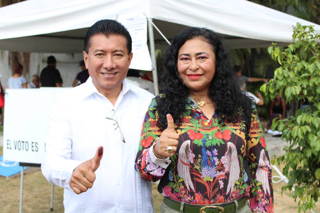 Cancún(Marcrix Noticias).- El candidato a la Presidencia municipal de Benito Juárez por Movimiento Ciudadano (MC), Chucho Pool, fue el primero en acudir a emitir su voto, y lo hizo en compañía de su esposa, Leisly Vera.