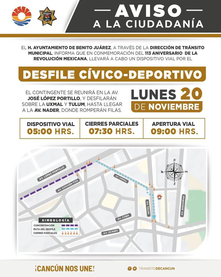 Cancún (Marcrix Noticias).— La Dirección de Tránsito de Cancún informó que habrá cierres viales por trabajos de obra pública.