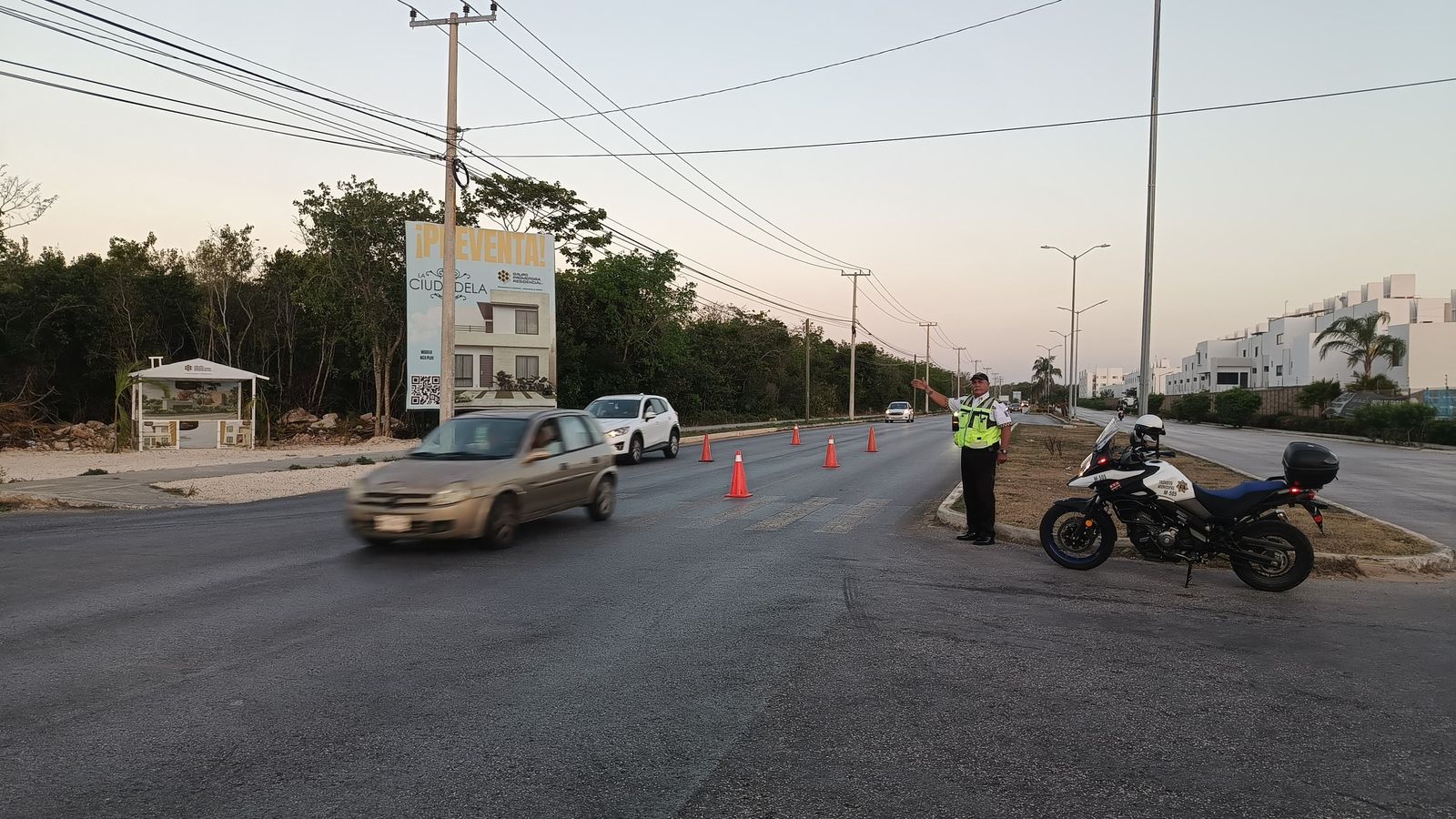 Avenida Kabah con avenida Huayacán: Se mantiene confinado el carril de baja velocidad para facilitar la incorporación del flujo vehicular de Huayacán hacia Kabah.