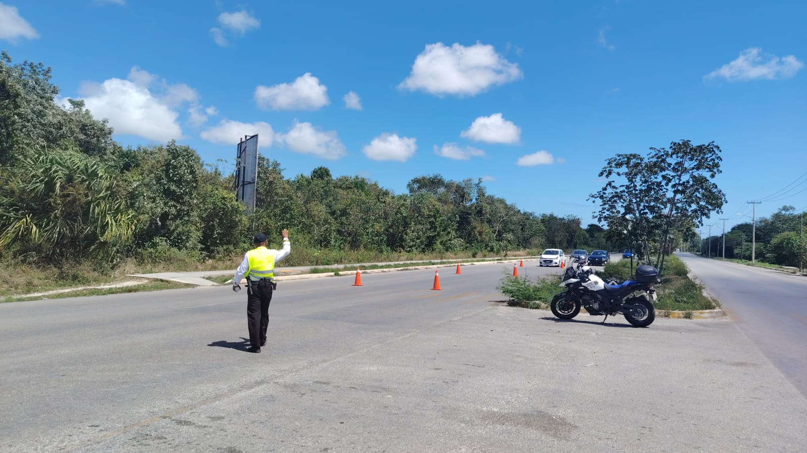 ➖ Avenida Kabah con avenida Huayacán, continúa el carril de baja confinado para desahogar e incorporar en dos carril la circulación de la Huayacán con Kabah, por trabajos del Puente Nichupté.