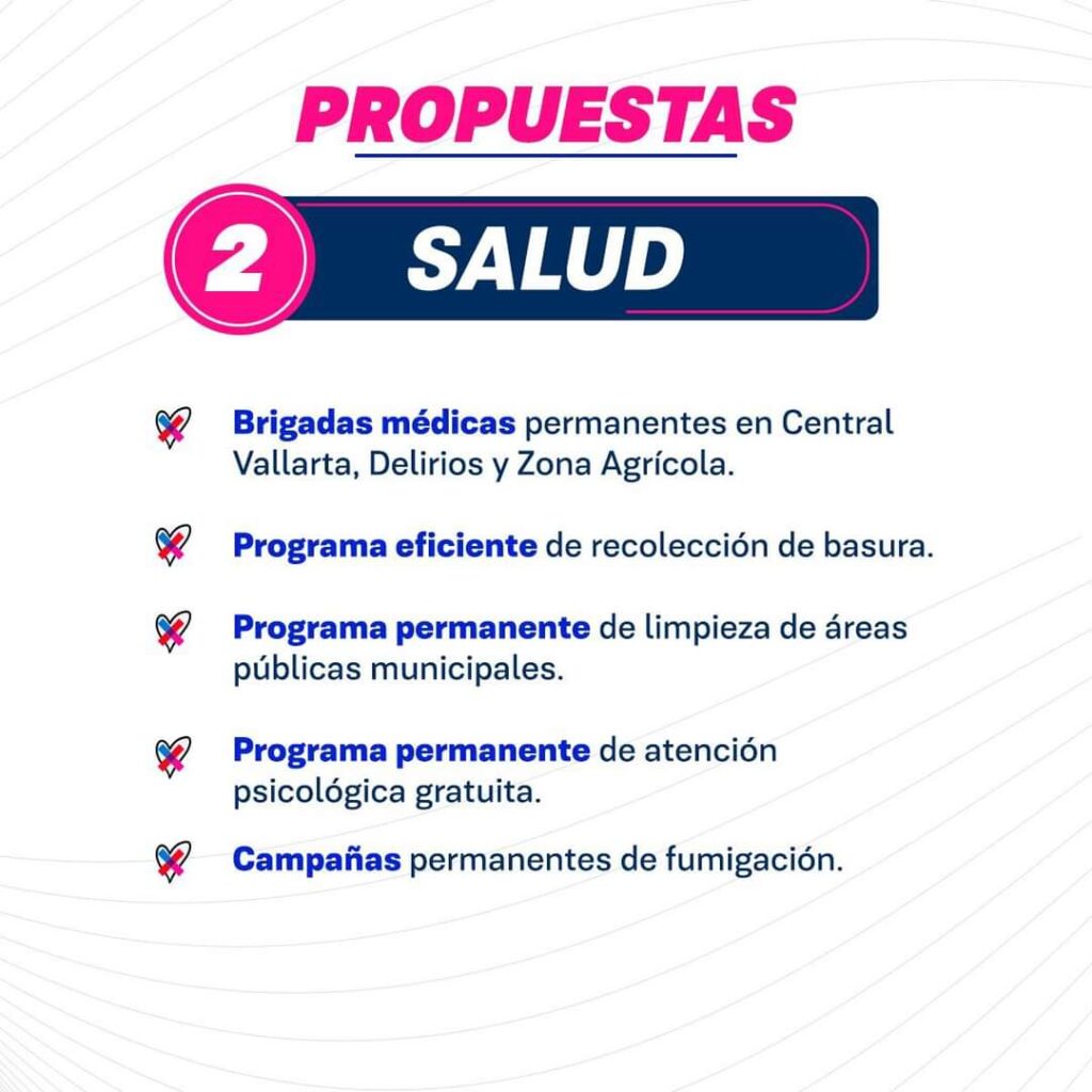 En el ámbito de la salud, se promete la construcción de dos clínicas municipales y la adquisición de ambulancias para cubrir todo el municipio.