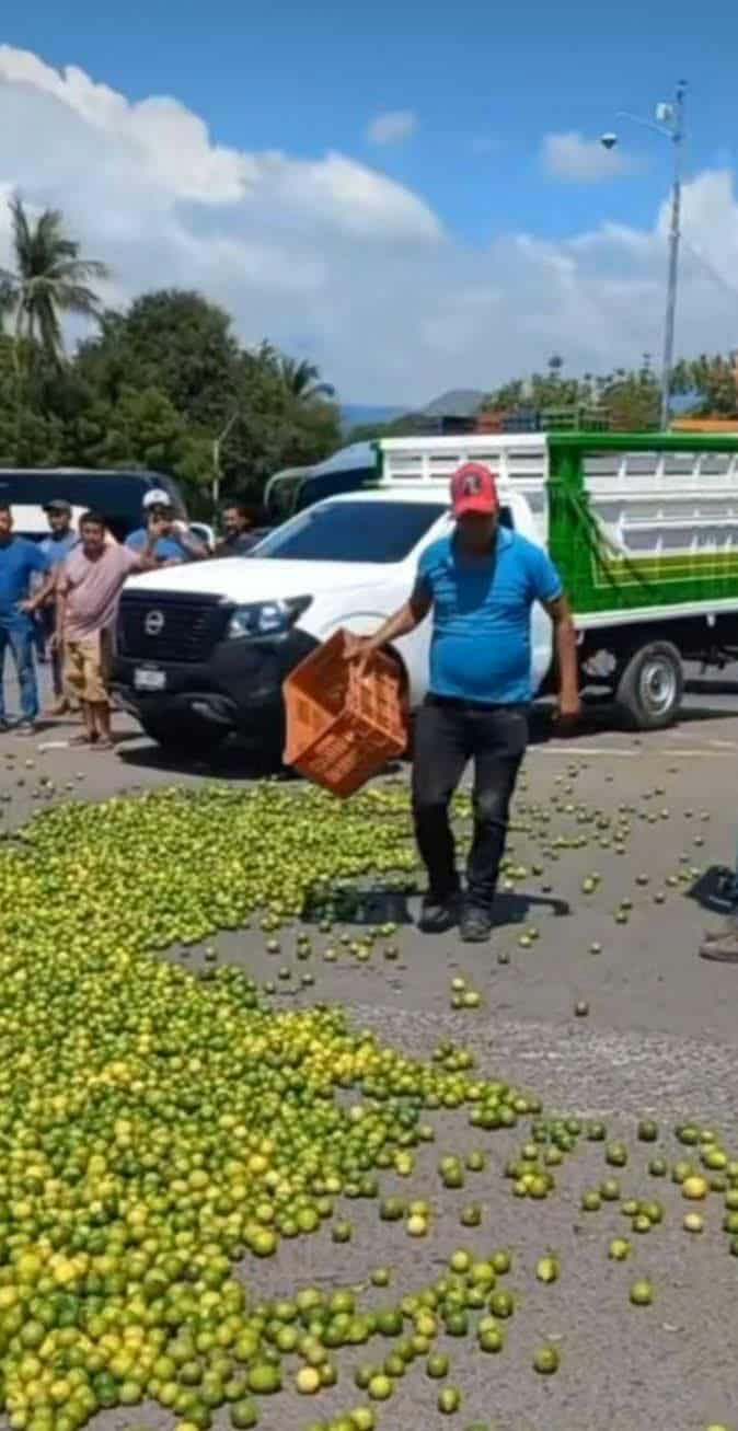 Más de dos toneladas de limón fueron arrojadas a las calles por agricultores de Michoacán durante una protesta que forma parte de un paro nacional, en demanda de mejores precios, apoyo al campo y protección de la cadena productiva
