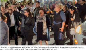 Ciudad de México (Marcrix Noticias).- La jefa de Gobierno de la Ciudad de México, Clara Brugada, asistió la noche de este martes al velorio de sus colaboradores Ximena Guzmán y José Muñoz, quienes fueron asesinados a tiros durante la mañana de este martes sobre la Calzada de Tlalpan.
