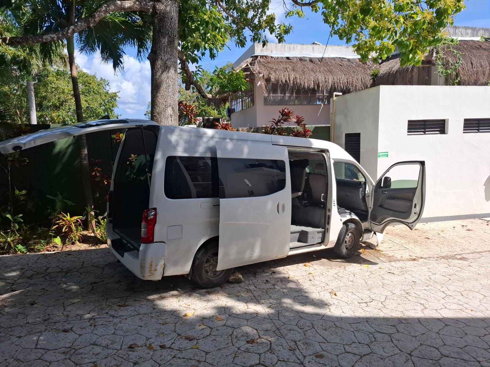 En la laguna encontraron que la van blanca con matrícula UVV-100-J, propiedad del hotel aun estaba en el agua, por lo que realizaron las maniobras para extraerle de la laguna.