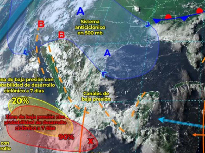 Por otra parte, el monzón mexicano originará chubascos con lluvias fuertes en el noroeste de México. A su vez, un canal de baja presión en el sureste del territorio nacional y el ingreso de humedad de ambos litorales, originarán chubascos en el noreste mexicano y chubascos con lluvias fuertes en el centro del territorio nacional, además de lluvias fuertes en el sureste del país y en la Península de Yucatán.