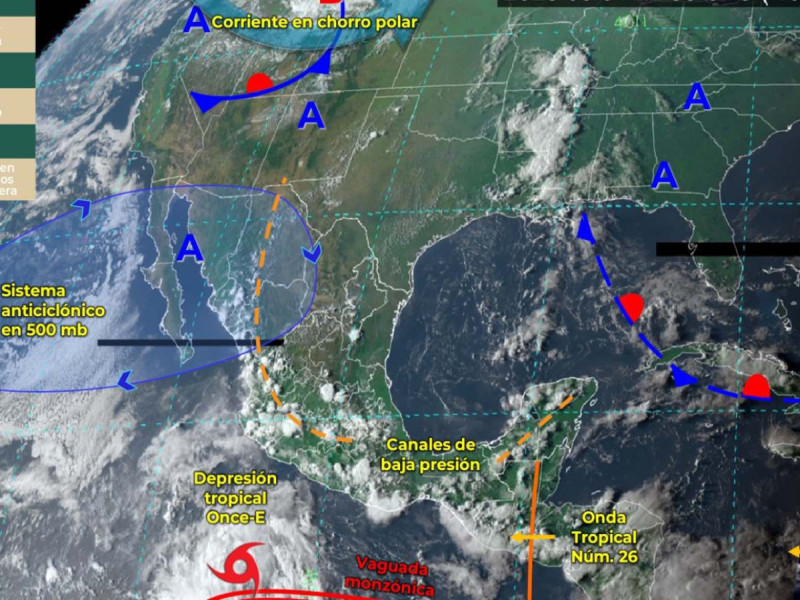 El monzón mexicano continuará en el noroeste del país, generando probabilidad de lluvias fuertes, descargas eléctricas y rachas de viento en Chihuahua, Durango y Sinaloa.