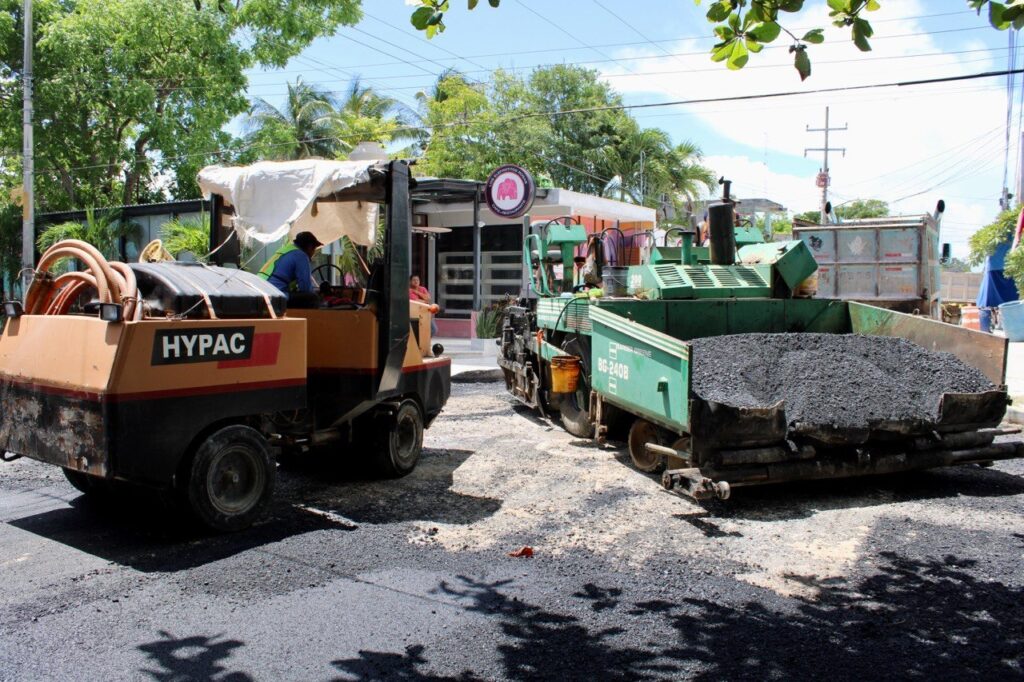 Puerto Morelos, Quintana Roo, 15 de septiembre de 2022.- Como parte del paquete de obras que se llevan a cabo en diversos puntos de la geografía municipal, dentro del Programa de Inversión Anual (PIA) 2022 del Gobierno de Puerto Morelos, este jueves comenzó la colocación de la carpeta asfáltica en las calles Caoba y Almendros, en la colonia Joaquín Zetina Gasca.