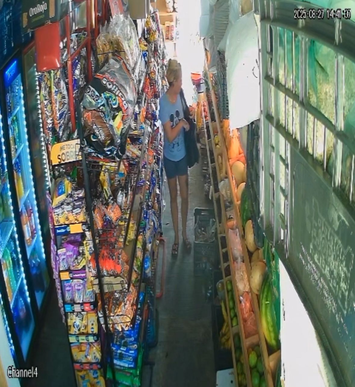 En un video reciente, la mujer fue captada mientras sustraía frutas, verduras e incluso una bebida deportiva, sin mostrar preocupación alguna.