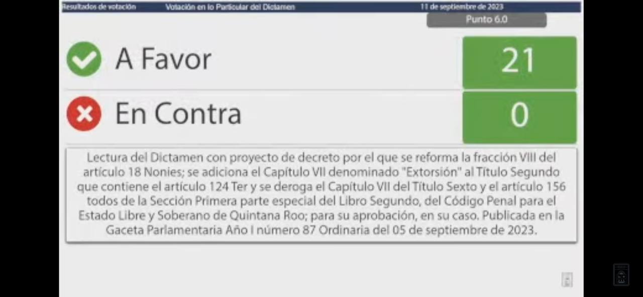 Chetumal (Marcrix Noticias).- Con 21 votos a favor el Congreso de Quintana Roo aprobó la iniciativa para reformar al Código Penal para “penalizar” el “cobro de derecho de piso”.