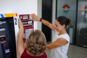 Acompañada por la secretaria de Anticorrupción y Buen Gobierno en Quintana Roo, Reyna Valdivia Arceo Rosado; el auditor Superior del Estado, Miguel Zogby Cheluja Martínez; el contralor Municipal, Hilario Timoteo Gutiérrez Valasis; y el director de Fiscalización, Armando Alberto Covarrubias Cortés, la Alcaldesa señaló que estos carteles contienen un código QR que permite acceder, de manera confidencial, al formulario de denuncias, además de ofrecer un canal para evaluar el desempeño de los servidores públicos. Texto y Fotos: Tomado del boletín