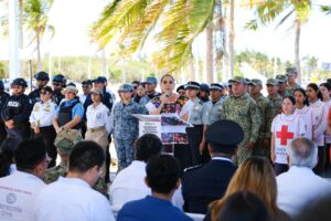 La presidenta municipal de Benito Juárez, Ana Paty Peralta de la Peña, dio la bienvenida a los participantes y destacó la importancia que para Cancún representa este operativo de seguridad, para la protección de los miles de turistas que recorrerán su territorio.
