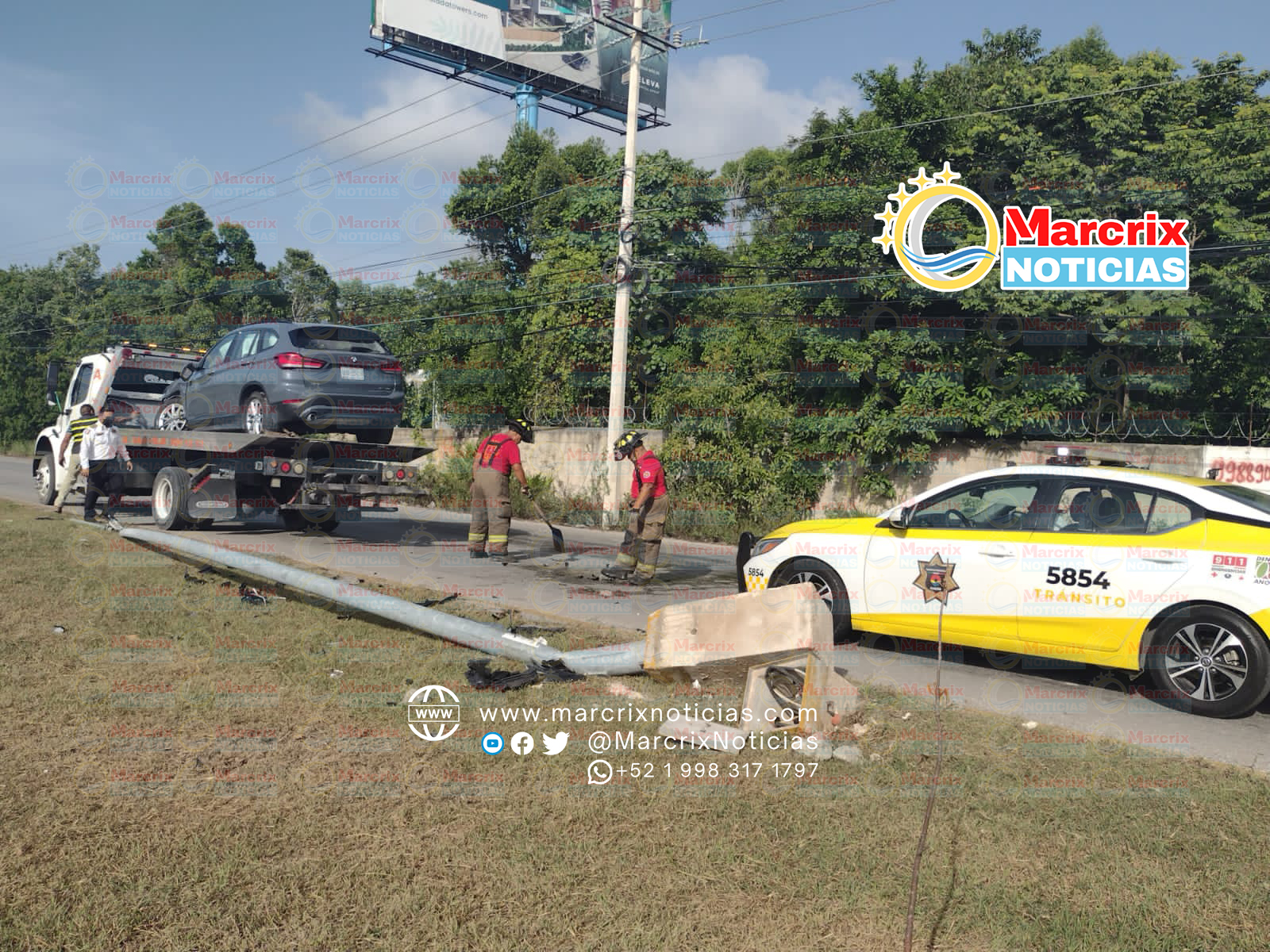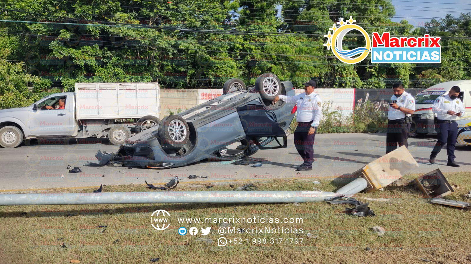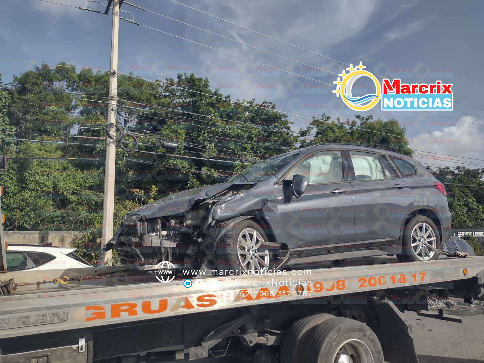 Cancún (Marcrix Noticias).- Con las llantas para arriba terminó un vehículo de lujo de la marca BMW modelo X1 sobre la avenida Huayacán de Cancún.
