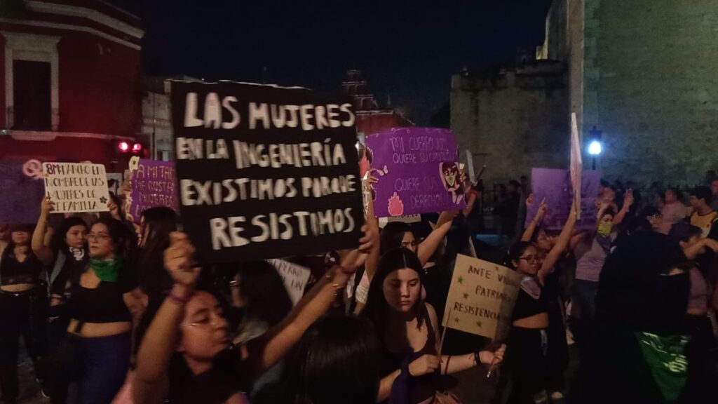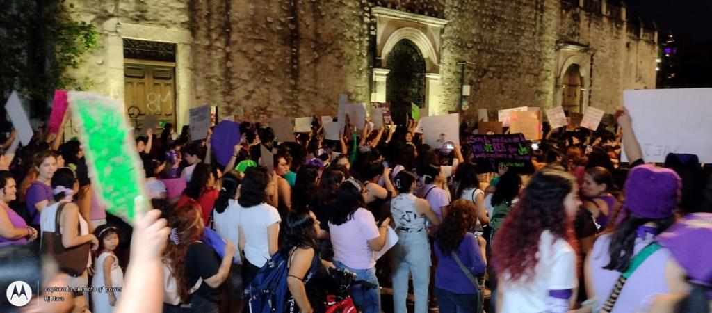Las mujeres llenaron el lugar e incluso estuvieron en el área de puestos que forman parte del Festival de Oaxaca y la Guelaguetza en Mérida. Alrededor de las 6:30 de la tarde comenzaron su avance sobre la calle 60. Según trascendió se dirigían al Monumento a la Patria.