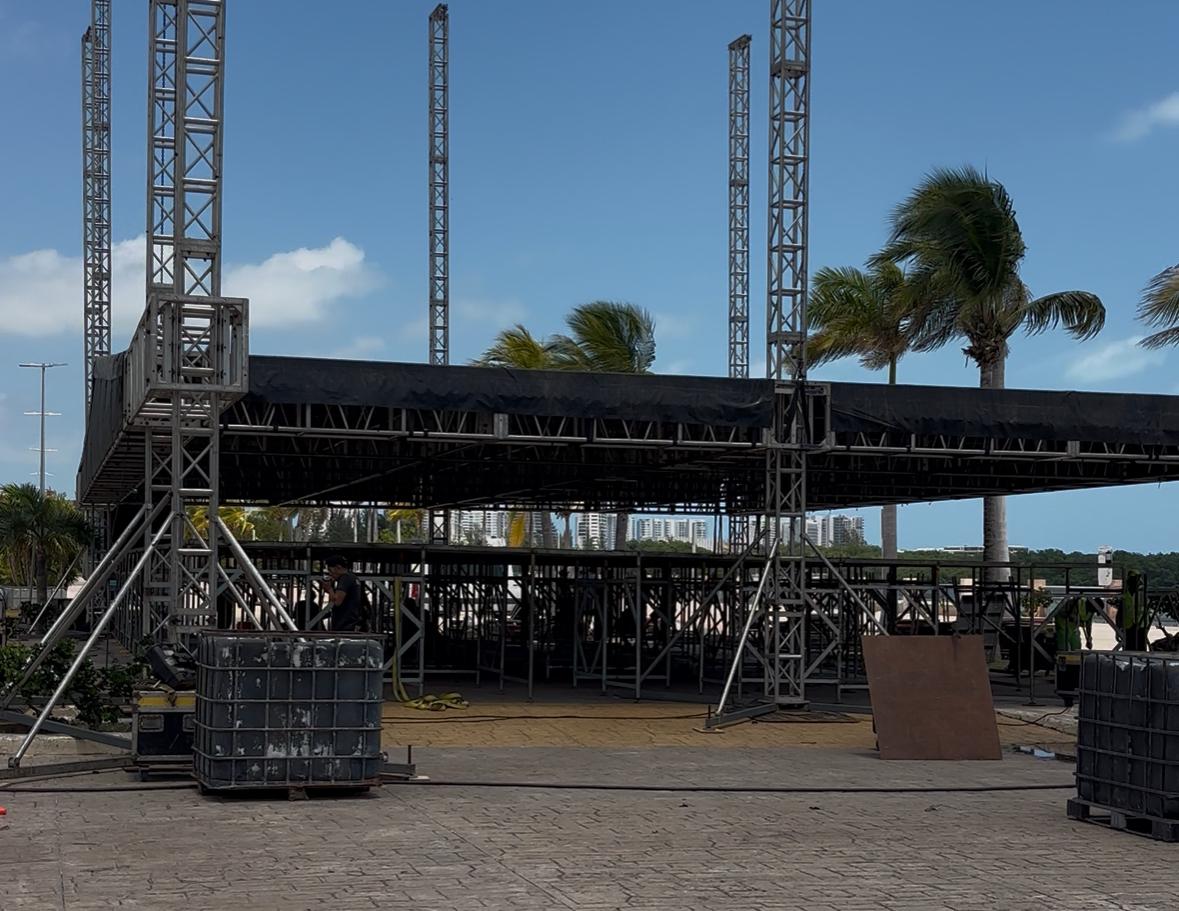 Desde el viernes 17 de abril comenzaron los preparativos del escenario principal en este emblemático espacio, el cual será sede de la presentación del grupo Los Ángeles Azules el sábado 19 de abril a las veintiuna horas. La instalación de la infraestructura ha generado expectativa entre habitantes y turistas que ya se preparan para asistir al evento.