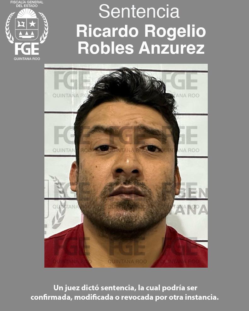 Benito Juárez (Marcrix Noticias).– Un juez de Juicio Oral sentenció a 20 años de prisión a Ricardo Rogelio Robles Anzures, por el delito de feminicidio, cometido en agravio de su pareja sentimental en el municipio de Benito Juárez, luego de que la Fiscalía General del Estado (FGE) acreditara plenamente su responsabilidad.