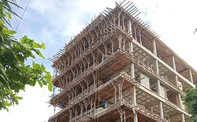 Dmas compartió videos y fotografías tomadas el 11 de noviembre de 2024, en los cuales se observa a trabajadores levantando la estructura de un edificio de siete pisos, conocido como Adamar Solimán.