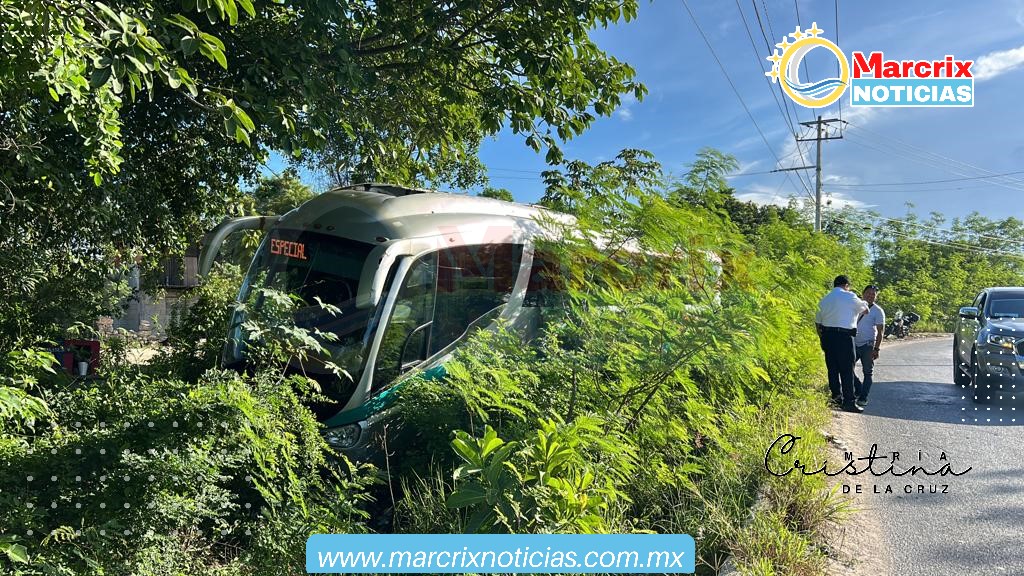 Cancún (Marcrix Noticias).- El conductor de un autobús de Autotur se quedó dormido en el periférico de Cancún, por lo que perdió el control de la unidad y se salió de la vía de rodamiento.