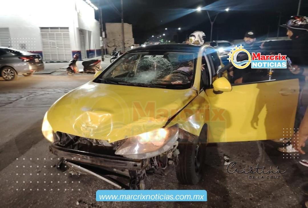 Cancún(Marcrix Noticias).- La madrugada de este lunes se registró un fuerte accidente en la intersección de la Avenida José López Portillo con la Avenida Chac-Mool, donde un conductor presuntamente alcoholizado, que manejaba un Seat Ibiza, terminó impactando a dos motocicletas y dejando a tres personas heridas de gravedad.