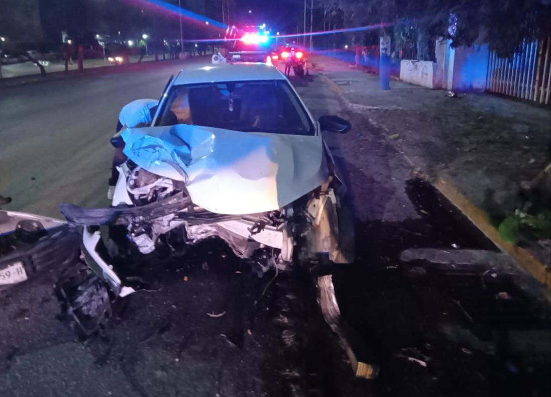 Cancún (Marcrix Noticias)-Aproximadamente a las 03:10 horas, un Chevrolet Onix blanco transitaba sobre la Av. Bonampak cuando, debido a la falta de precaución del conductor y las condiciones de la vía, perdió el control del automóvil.