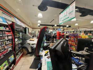 Playa del Carmen (Marcrix Noticias).– Una joven conductora protagonizó un aparatoso accidente la noche de este lunes, al estrellar el vehículo en el que viajaba, contra una tienda de conveniencia Seven Eleven ubicada en el fraccionamiento Cataluña, sobre la avenida 28 de Julio, en Playa del Carmen.