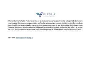 Vizsla Silver detalló que, como medida preventiva, sus operaciones presenciales en la zona permanecen suspendidas, mientras se prioriza la seguridad del personal y se fortalece la colaboración con las instancias de seguridad para localizar a los trabajadores que aún no han sido encontrados.