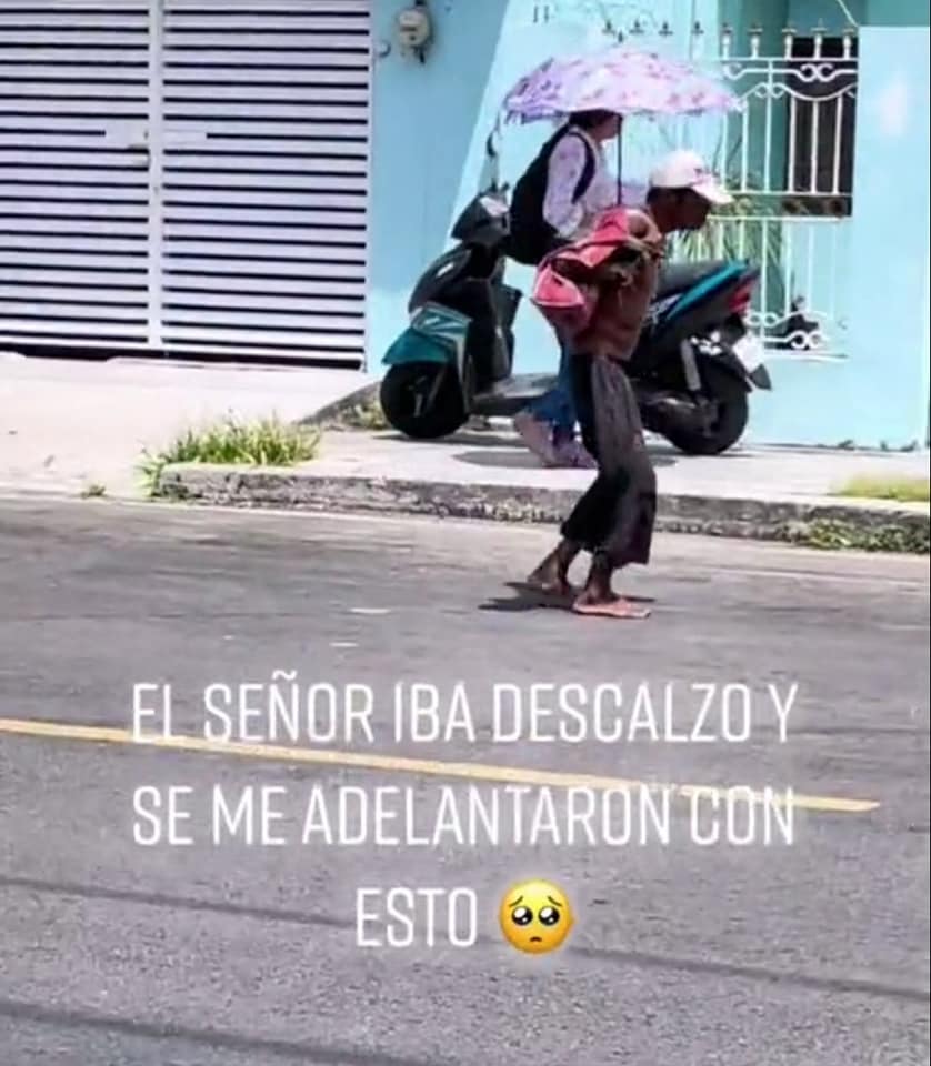 Chetumal (Marcrix Noticias).- El conductor de un vehículo y al parecer trabajador del gobierno de Quintana Roo, se convirtió en una inspiración y conmovió a los usuarios de las redes sociales, luego de que fuera grabado bajándose de su auto y ponerle unos zapatos a un hombre de la tercera edad que caminaba descalzo por las calles de Chetumal.