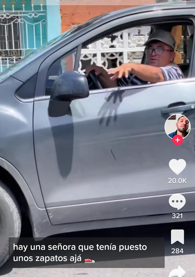 Detalló que notó algo inusual y empezó a grabar. Vio cuando un hombre se bajó de su carro y le puso unos zapatos a esta persona.