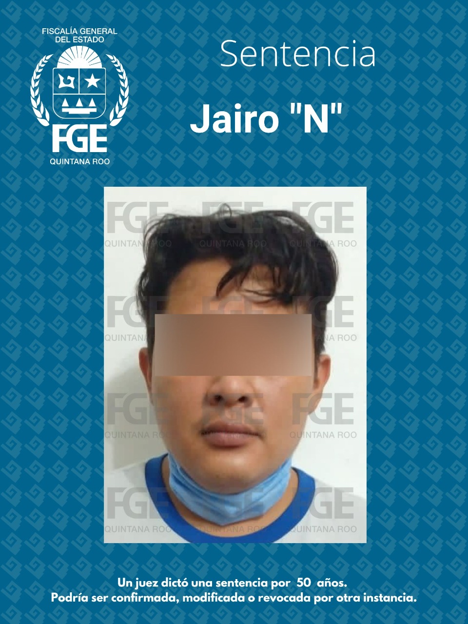 Cancún, Quintana Roo, a 09 de octubre de 2022.- La Fiscalía General del Estado, que encabeza Óscar Montes de Oca, informa que, a través de la Fiscalía Especializada en Delitos contra la Libertad Sexual y el Desarrollo de la Personalidad, se dictó sentencia máxima de 50 años de prisión a Jairo “N” por el delito de violación en contra de una niña.
