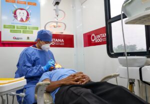 Con la titular del Ejecutivo Estatal; la presidenta del DIF Quintana Roo, Verónica Lezama y el secretario de Salud, Flavio Carlos Rosado, la Primera Autoridad Municipal recorrió el estacionamiento del estadio “Toro Valenzuela”, en la Supermanzana 70, en el que se instalaron las unidades móviles para la asistencia médica como: laboratorio clínico, mastografía, rayos X de tórax, electrocardiograma, densitometría, ultrasonido pélvico-obstétrico, nutrición, así como salud dental, visual y del oído.