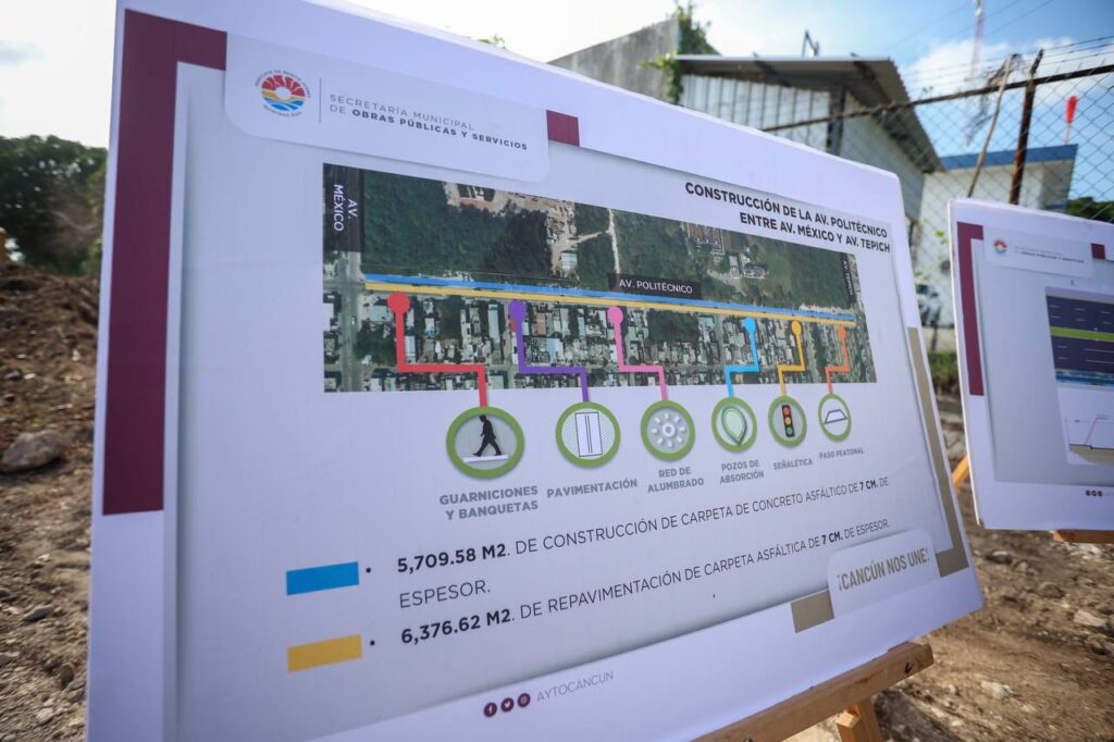 Cancún, Q. R., (MARCRIX Noticias), a 28 de julio de 2023.- La Presidenta Municipal, Ana Paty Peralta, realizó un recorrido de supervisión en el inicio de los trabajos de construcción de la avenida Politécnico en la Supermanzana 510, obra que permitirá mejorar el acceso al Hospital General Regional No. 17 del IMSS y agilizar los tiempos de traslados de los vecinos y ciudadanos que utilizan la vía de rodamiento.