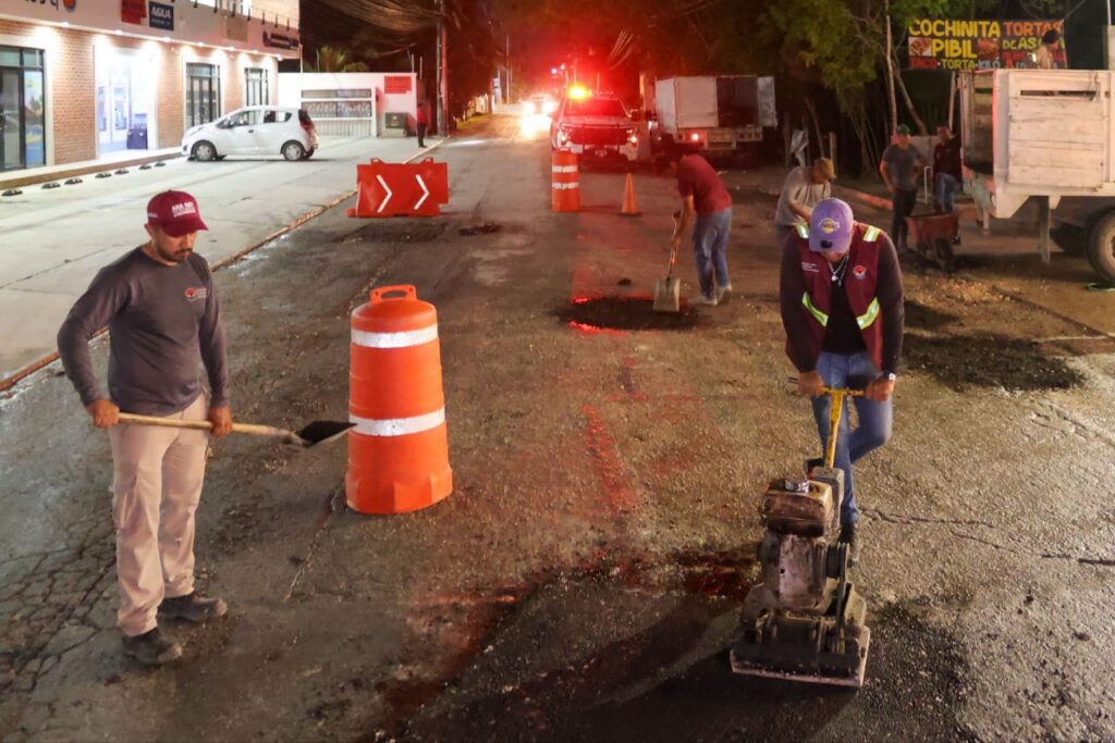 Estas acciones, detalló, se realizan gracias al personal distribuido en tres turnos: en la mañana, atienden siete brigadas de bacheo con asfalto, y cinco brigadas con cimentación con el cementante; en la tarde, seis brigadas de bacheo con cementante y cuatro con asfalto. Por la noche, laboran tres brigadas a partir de las 22:00 horas hasta las 03:00 horas.
