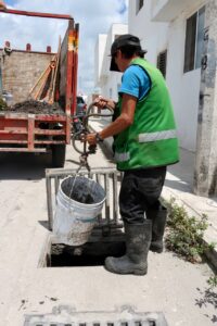 Puerto Morelos (Marcrix Noticias).– La presidenta municipal Blanca Merari Tziu Muñoz informó que desde el pasado mes de septiembre se han reforzado los trabajos de mantenimiento y limpieza de los pozos de absorción, rejillas y areneros, a fin de mantener en óptimas condiciones la red de drenaje pluvial durante la temporada de lluvias y evitar afectaciones a la ciudadanía.