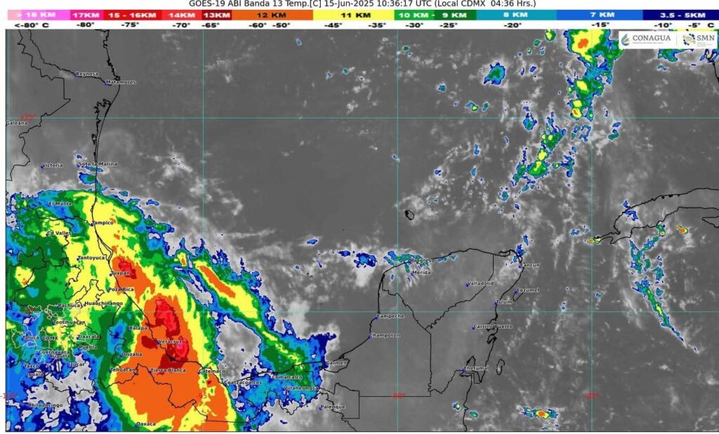 7.- JOSÉ MARÍA MORELOS.- Cielo parcialmente nublado a nublado, intervalos de chubascos con lluvias puntuales fuertes acompañadas de actividad eléctrica. Viento del este y sureste de 15 a 25 km/h con rachas más fuertes. Ambiente muy caluroso. Temperatura Máxima: 36/38 GC, Temperatura Mínima para mañana: 23/25 GC. Sensación Térmica: 41 GC. Presión Atmosférica: 1016 hPa. Salida del Sol: 06:17 h. Puesta del Sol: 19:37 h.
