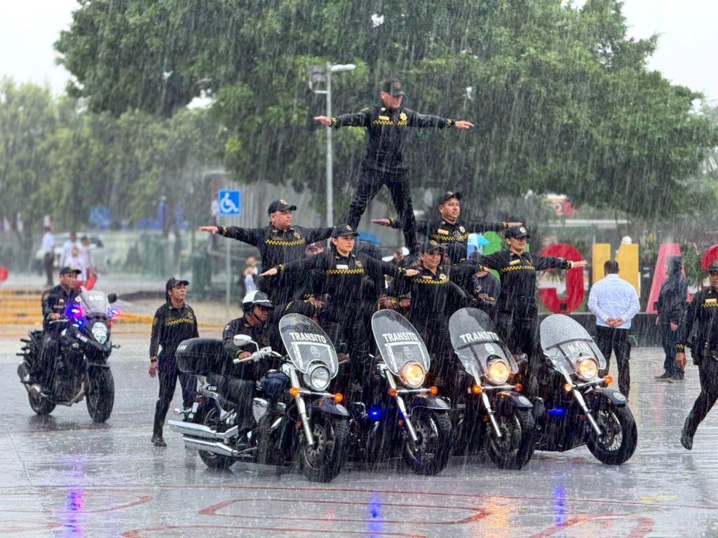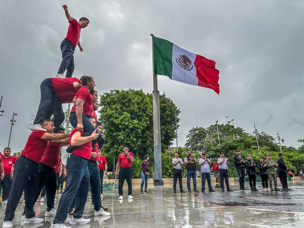 • Pese a intensa lluvia, destacaron alumnos de varios niveles educativos, deportistas locales y elementos de varias corporaciones policiacas