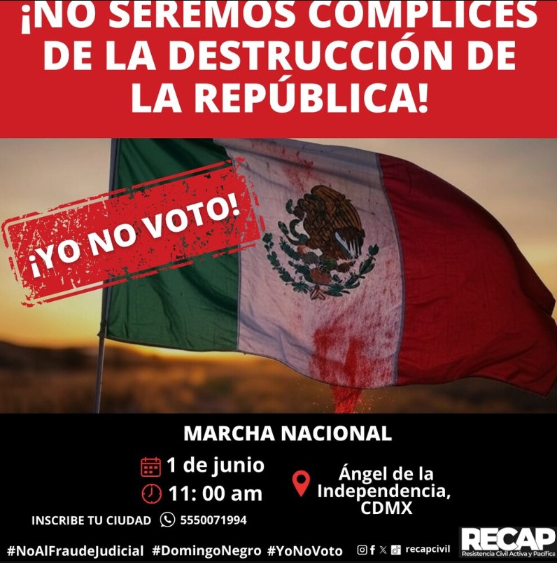 La iniciativa ciudadana ha bautizado esta fecha como el “Domingo Negro”, al considerar que no representa un ejercicio democrático real, sino un intento de control político sobre el Poder Judicial.