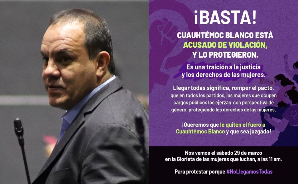 Colectivos feministas marcharán el 29 de marzo, para que Cuauhtémoc Blanco enfrente la justicia, tras el rechazo a su desafuero en la Cámara de Diputados.