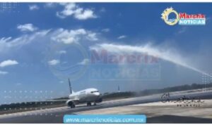 El vuelo proveniente de Panamá aterrizó con 160 pasajeros a bordo y fue recibido con el tradicional arco de agua, un gesto simbólico en la aviación para conmemorar eventos especiales.