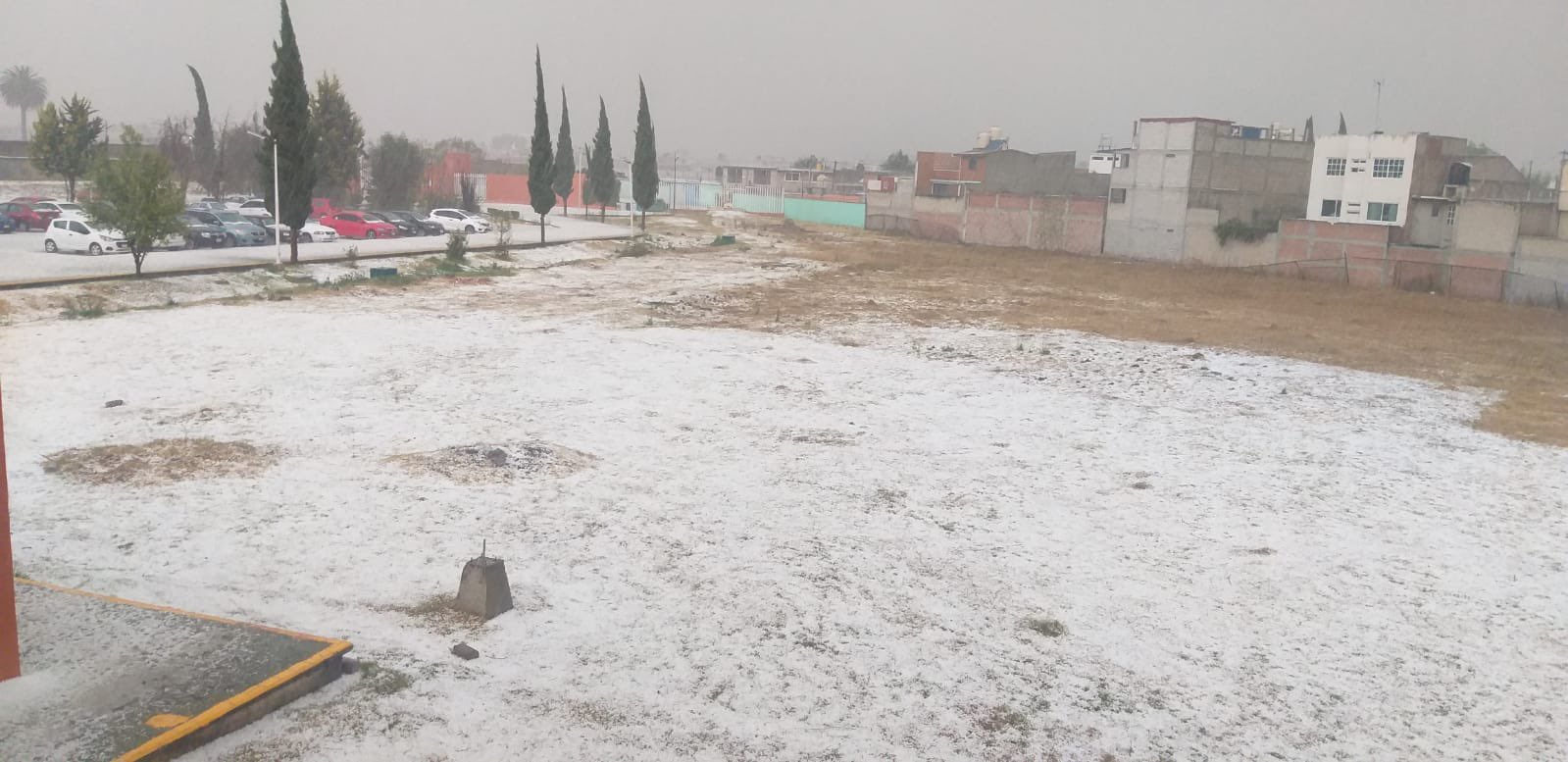 El granizo, de hasta cinco centímetros de diámetro, cayó sobre los municipios del Estado de México de Coacalco, Cuautitlán, Tultitlán y Cuautitlán Izcalli, ubicados al norte y norponiente de la capital del país.
