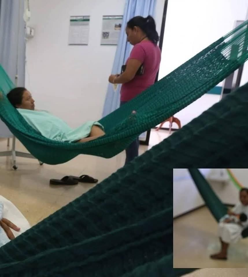 Las fotos de hospitalización en el área materna infantil se hicieron virales, al estar las pacientes en su proceso de recuperación, después del parto, descansando en las hamacas en este hospital.