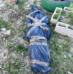 Al llegar las autoridades visualizaron un bulto con la silueta de una persona envuelto en bolsas negras para basura y encintado.