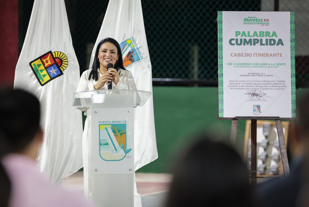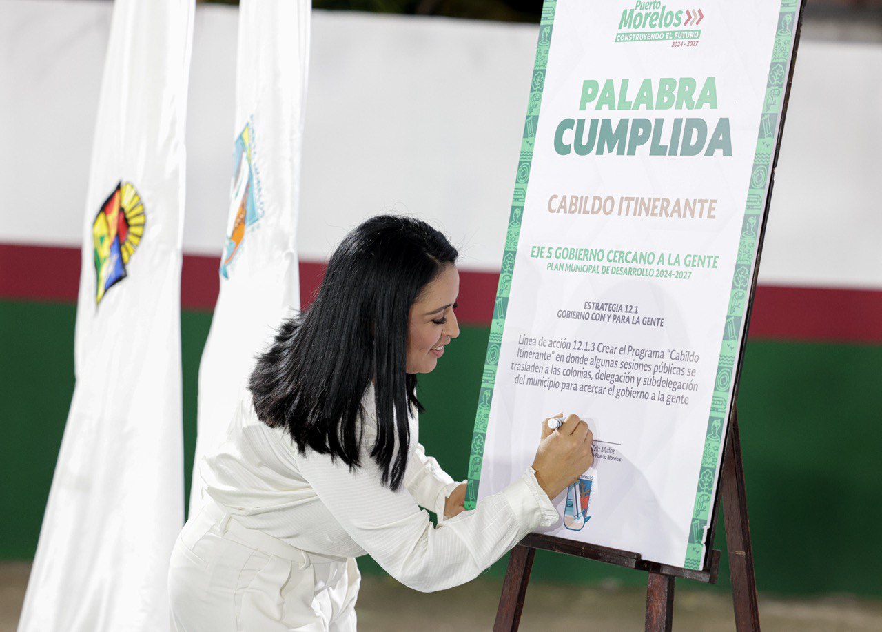 Puerto Morelos (Marcrix Noticias)- En el marco de la XXVI Sesión Ordinaria de Cabildo del H. Ayuntamiento de Puerto Morelos, la presidenta municipal Blanca Merari Tziu Muñoz firmó el compromiso de “Palabra Cumplida. Programa de Cabildo Itinerante”, al realizarse la Sesión en el Domo del Cenote de Leona Vicario, previamente declarado recinto oficial.