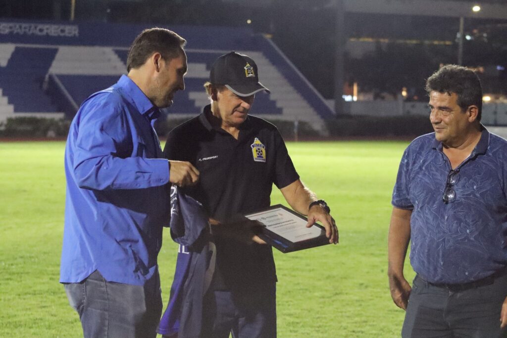 En la entrega del significativo reconocimiento al director técnico Bracamontes, junto al titular del club Amador Gutierrez estuvo el profesor Enrique Lobato, actual director deportivo y quien fuera el primer entrenador profesional de la institución playense.